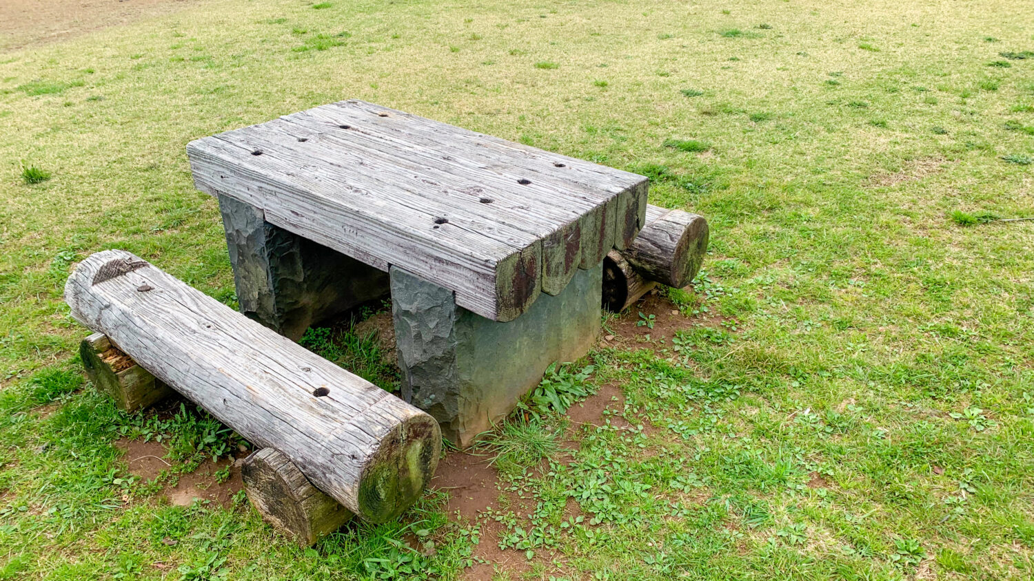 • 木製テーブルとイスで、お弁当を広げながらのんびり休憩もできる