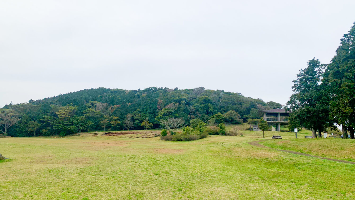山道をぐんぐん登っていって、最後のカーブを曲がった瞬間に、目の前が一気にひらけるんですよ。そこに広がっていたのが、名前の通り“風”と“空”を全身で感じられる、あの大きな芝生の広場。標高の高い烏帽子岳の山頂付近に整備された公園で、駐車場やトイレ、休憩用の四阿もちゃんとあります。