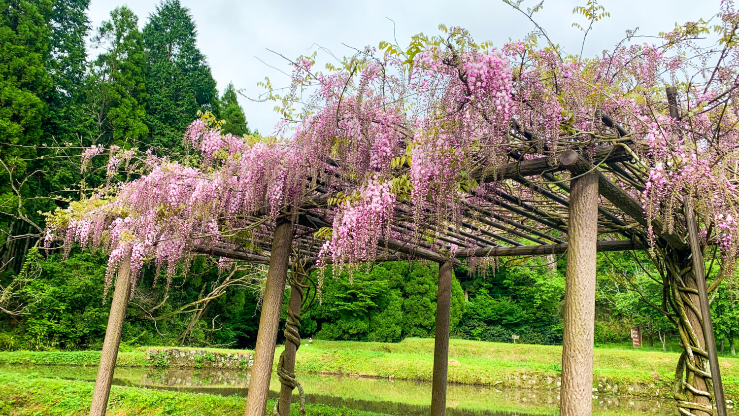 水源のそばには藤棚もありました。僕らが行った時はちょっと時期はずれだったんですが、満開の季節ならもっといい景色が見られそうですね。