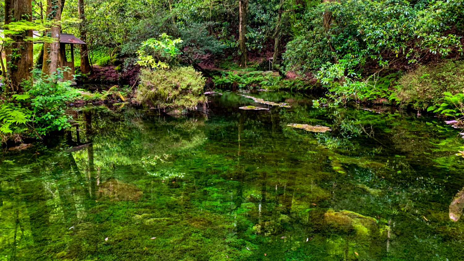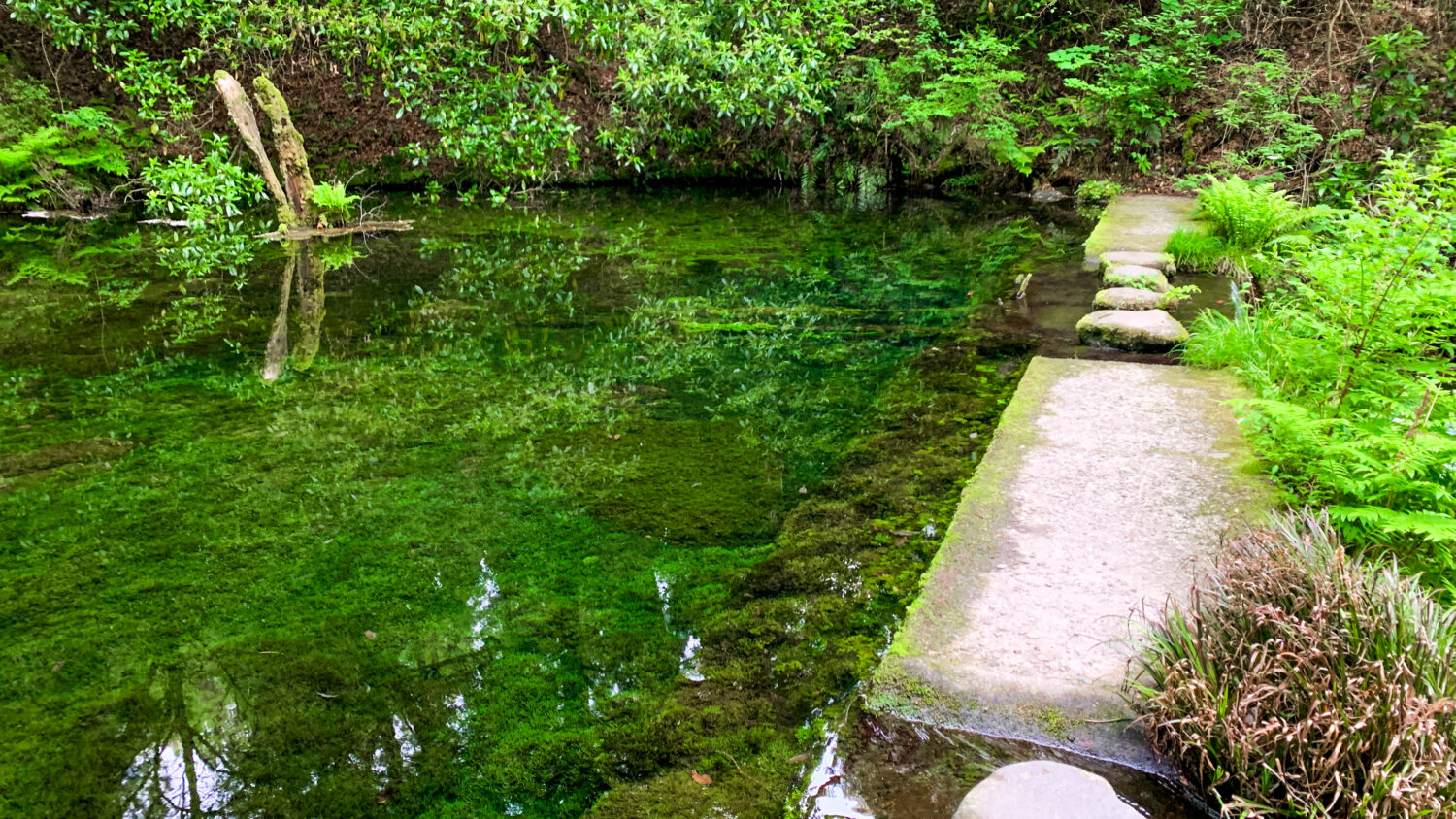 熊本・産山村の池山水源は、水が綺麗で、のんびり休憩できる場所でした。