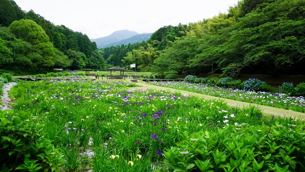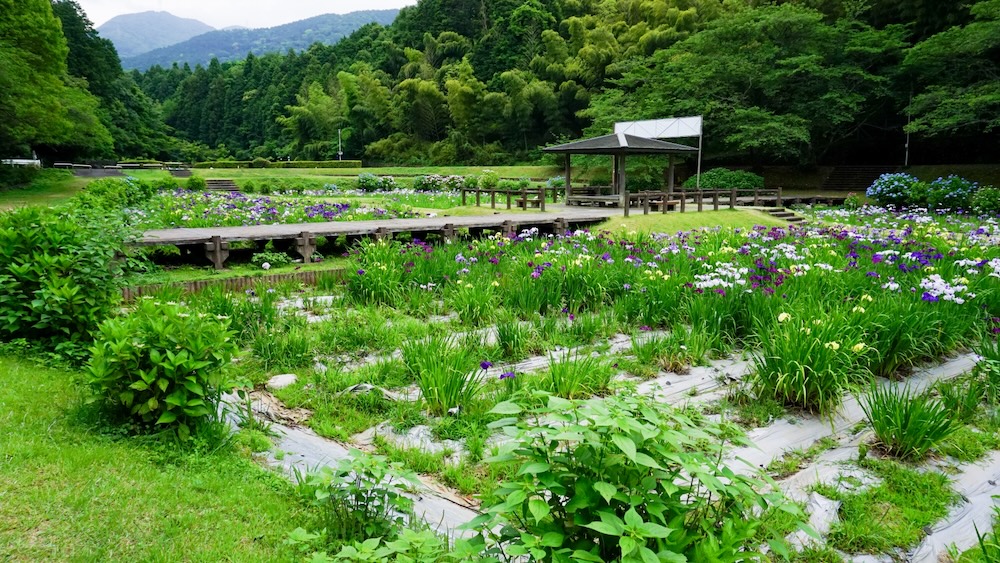 公園内は綺麗に整備されていて、菖蒲園以外にも桜の名所としても有名で、春には花見客でにぎわうそうです。山の中という立地ながら、平日でも観光客が多く訪れる人気の公園となっています。
