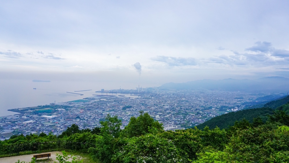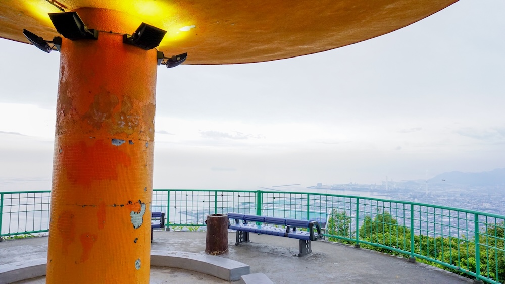車でさっと登ってこれる気軽さも魅力のひとつで、展望スペースからは瀬戸内海方面の景色が広がっています。